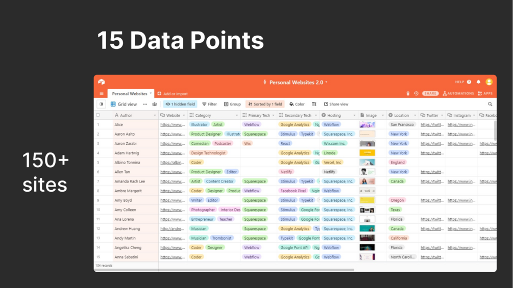 You'll get 150+ personal websites list in an Airtable Base and Notion Database Format (Premium)